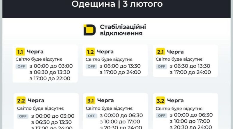 Одещина: графіки відключень на 3 лютого