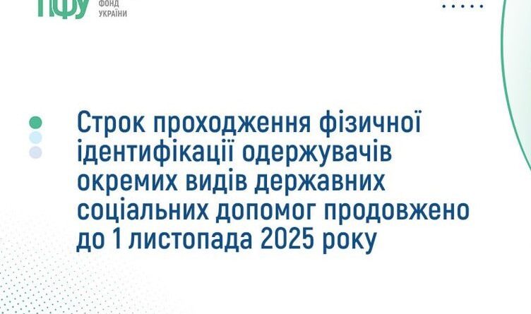 1 жовтня Урядом ухвалено постанову № 1219 “Про внесення змін до деяких постанов Кабінету Міністрів України щодо виплати окремих видів державної допомоги”, якою строк, визначений для проходження фізичної ідентифікації одержувачів окремих видів державних допомог,продовжено до 1 листопада 2025 року.